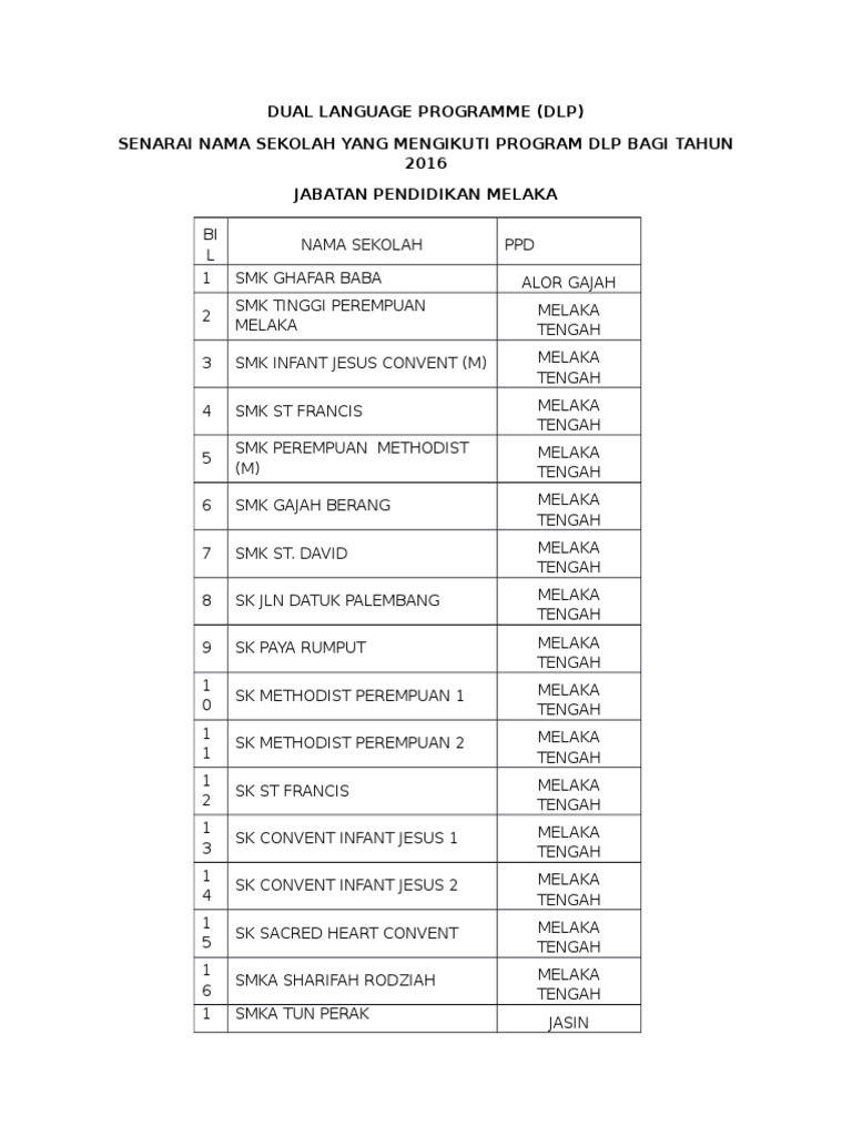 Dataset menunjukkan senarai sekolah yang menawarkan program dual language programme (dlp) di malaysia seperti pada 31 oktober 2018. Berikut senarai filem yang akan ditayangkan di pawagam seluruh malaysia pada tahun 2018. 0 ratings0% found this document useful (0 votes). Savesave senarai sekolah rendah dlp selangor for later. 1) sekolah jenis kebangsaan (cina) pai sheng.