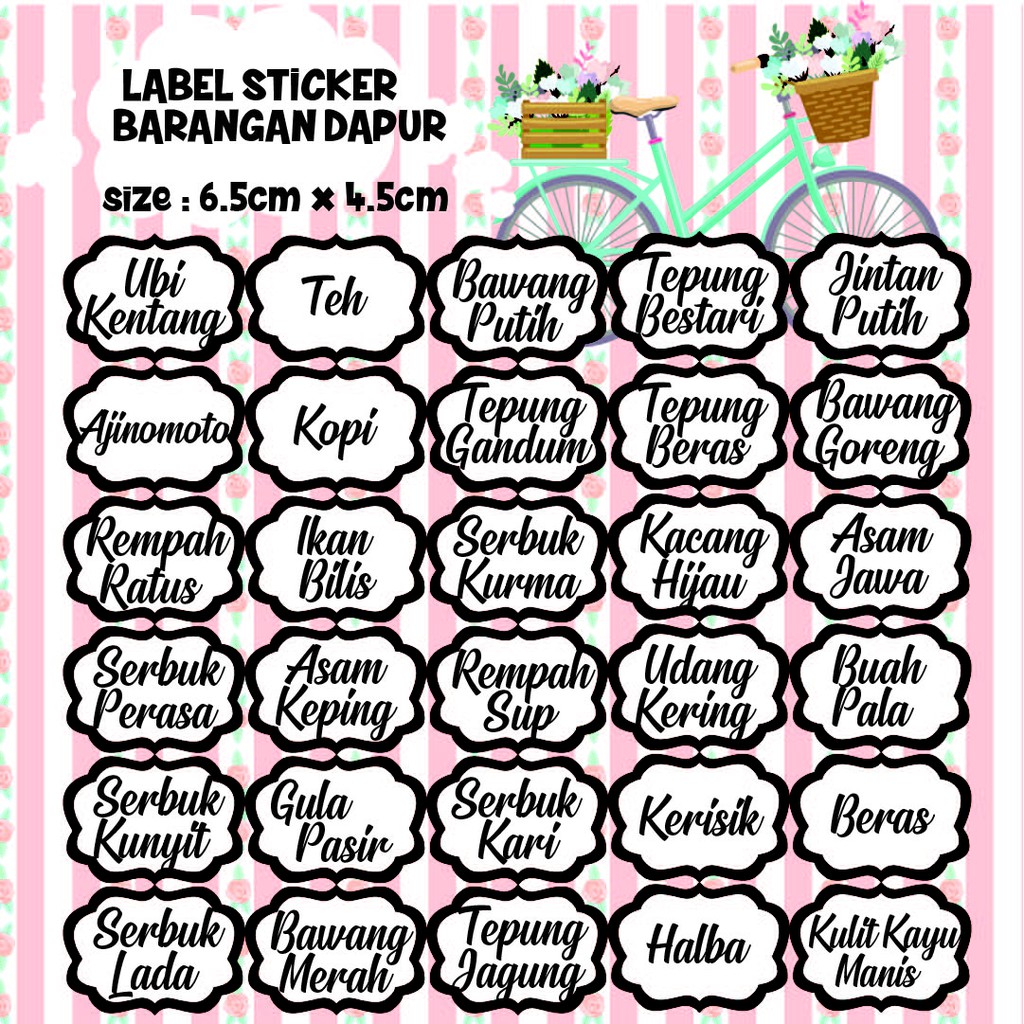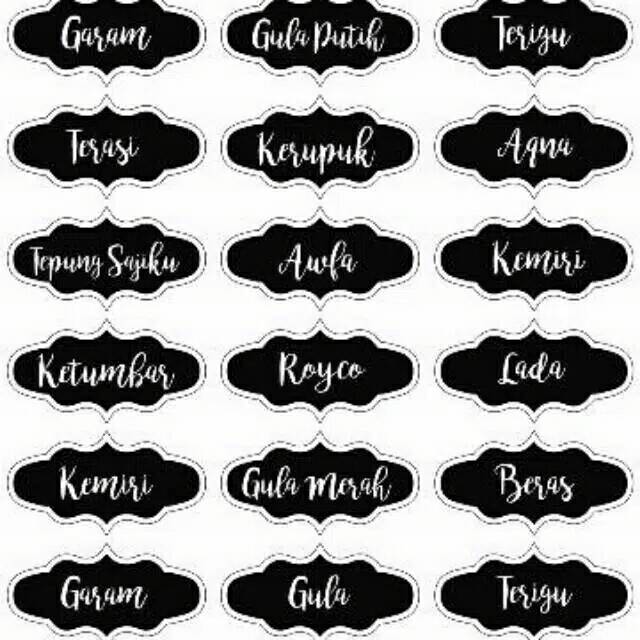Kami membuat desain label ini dengan sepenuh hati, temukan pilihan desain terbaik untuk bisnis mu. Label sticker barcode 33mm x 19mm ( 3 line ) semicoated isi 5000 pcs. Custom roll labels are designed for speed and compatible with most label personalized labels with free shipping and online proofs. Barcode stickers offered can be made available by us in different finish configuration choices so as to perfectly match up with the specific end working requirements of. Cetak sticker transparant menggunakan optional tinta putih dengan harga termurah. Buat storage bumbu di dapur makin cantik dan rapi yuk!caranya dengan menempelkan stiker nama transparan ke toples bumbu atau bahan masakan di dapur.dijamin. Personalized sticker labels make it fast & easy to label your products or packaging. Balang dapur custom made adalah senarai selain dari senarai nama balang ready made atau ingin menukar sebahagian senarai yang telah disediakan. Lagipun senang nak cari bahan nanti. Diy label templates download diy label designs. Sticker label pengiriman (sticker alamat online shop) sticker packing barang pengiriman online shop, desain bisa disesuikan dengan tema/logo online shop anda. Stiker label untuk keperluan penempelan stiker pada produk anda. See more of sticker label barang dapur on facebook.