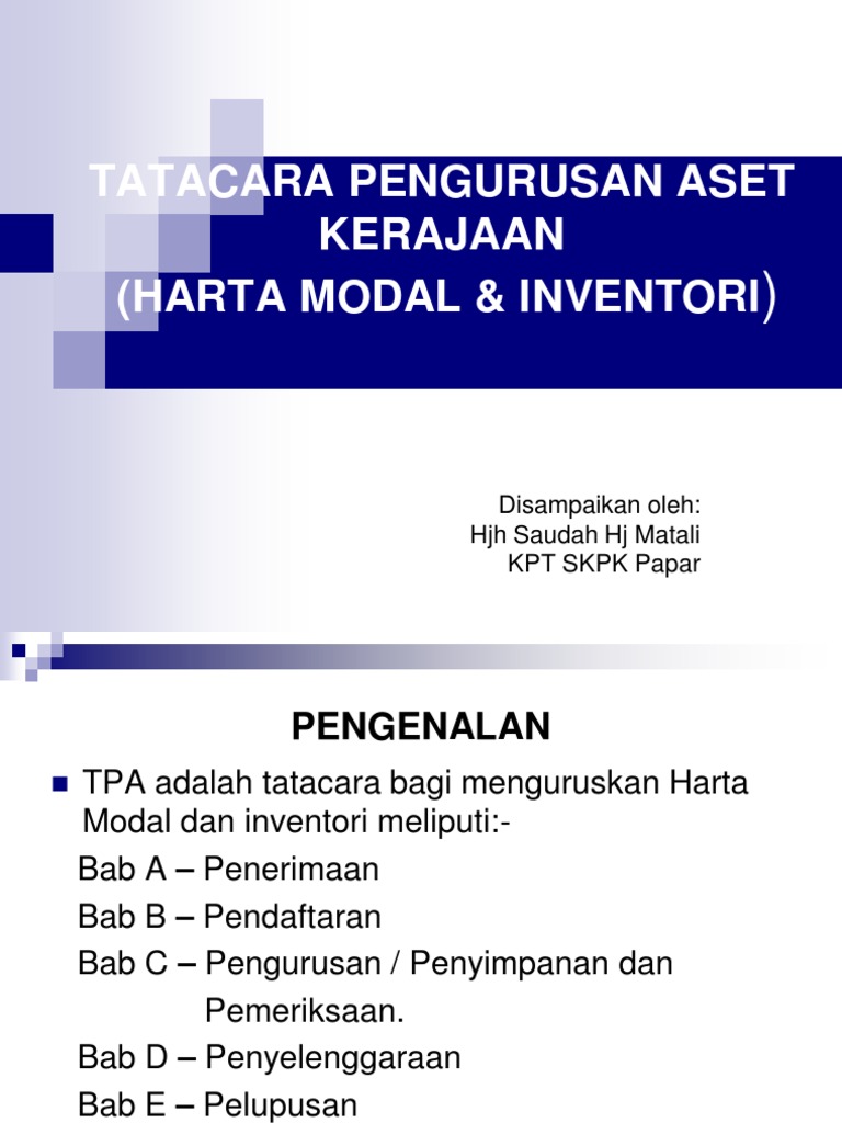 Pelajaran ma *(ruangan boleh ditambah jika ahli lembaga pemeriksa lebih daripada 2 orang ) 12. Berdasarkan perbincangan di atas, adalah diharapkan dengan sistem pengurusan hartanah secara. Pengurusan aset alih kerajaan secara sistematik. Pengenalan dasar pengurusan aset menyeluruh pengurusan kehilangan aset taklimat penyediaan data asas sistem pengurusan aset kementerian pengurusankehilangan aset alih kerajaan bahagian perolehan dan penswastaan. Sistem tersebut hanya garis panduan dalam mengurus aset secara pentadbiran tetapi tidak mengambil kira dasar dan polisi perakaunan aset……….